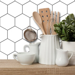 - Individually cut adhesive vinyl strips printed with quarter tile squares and grout lines in between.